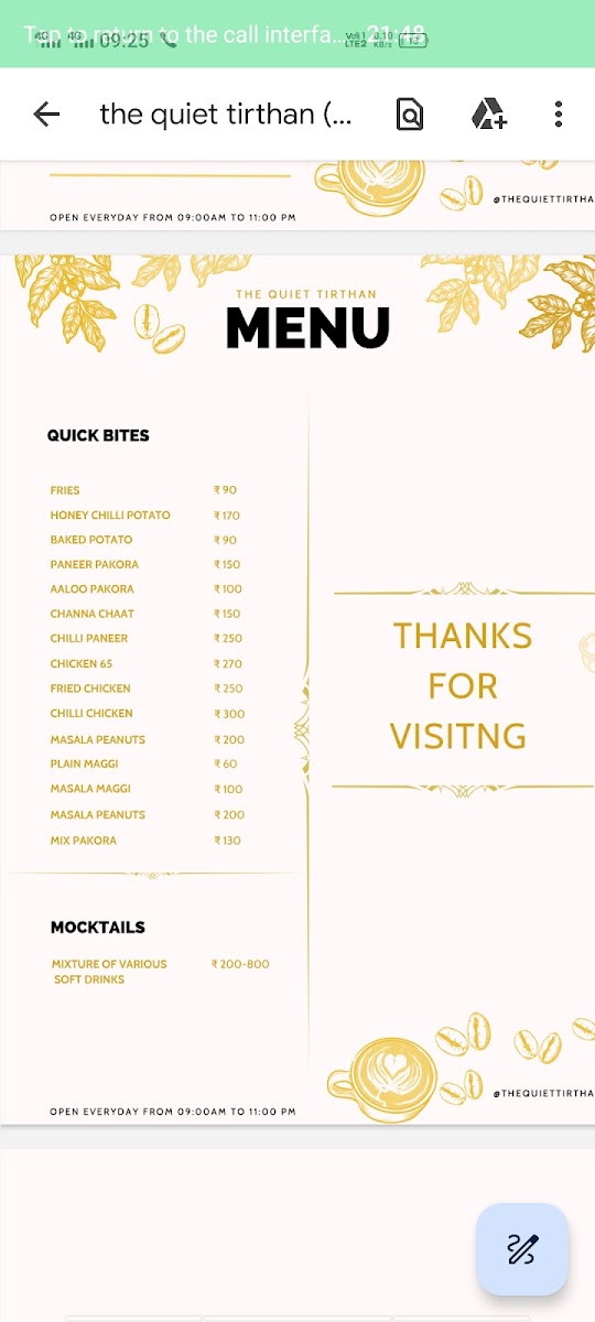 The Quiet Tirthan has earned high praise not just for its delicious offerings but also for its stunning location. Lata Devi remarked on the café's "good food, good service," and emphasized a must-visit experience, while Yashika Joshi described the quality and overall experience as "very good." The positive customer experiences capture the true essence of what The Quiet Tirthan stands for—a hidden gem where every visit is marked with enjoyment.